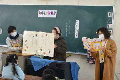 今回の読み聞かせで大型絵本を読んでもらいました。