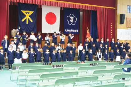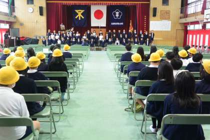 明日の入学式に向けて新6年生と新2年生が登校しました。6年生は会場の設定や1年生の教室の掃除などを熱心に行いました。2年生は歓迎の歌と呼びかけです。6年生の見ている前でしっかり演技できました。明日の入学式が楽しみです。