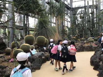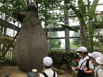 咲くやこの花館では、入口すぐの温室から興味深く見学をしていました。食中植物、珍しいランやハスの花。