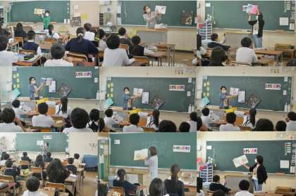 みんなが楽しみにしている絵本の読み聞かせの時間です。たくさんの絵本を紹介してもらっています。