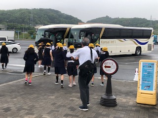 淡路島に着きました。小雨パラパラですが、みんな元気いっぱいで賑やかな旅行です。