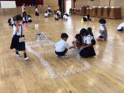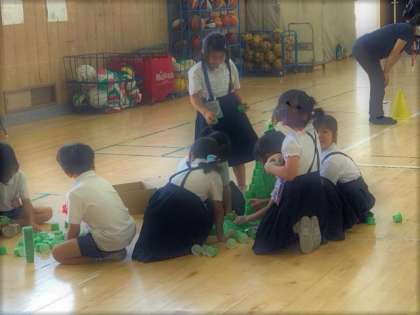 ひとりで形の組み合わせを楽しんだり、グループで協力して大きな形を作ったりと広い場所で思い思いの表現ができました。