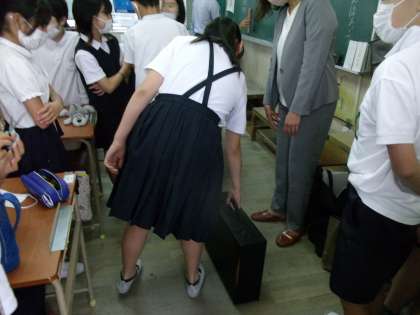 1千万円の束や1億円の入ったカバンを持ってみました。とても重そうです。