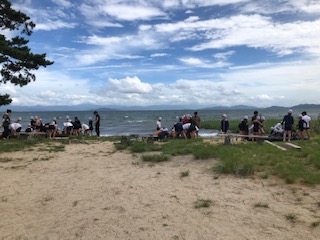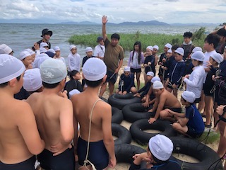 イカダに挑戦。カッターに乗るよていでしたが、強風のためイカダを自分たちで作って湖に出ていきます。さて、どうなりますか?