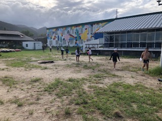 湖上のプログラムが終わりました。タイヤのイカダで波に乗る経験ができました。これから、部屋に入って、夕食の準備です。