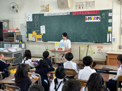 朝の時間に「たからだから」さんに絵本の読み聞かせをして頂きました。絵本「やきざかなののろい」・・表紙だけでどんな話なのが想像でワクワクしてしまいます。子どもたちはグッと集中して聞いていました。