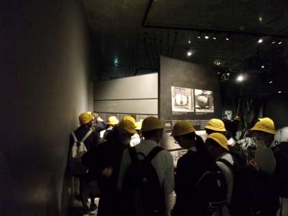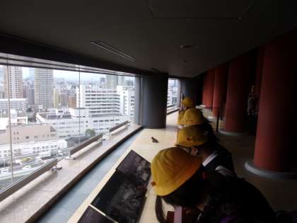 大阪城公園でお弁当を食べたあと、ピースおおさかに移動して見学を行いました。ワークシートを片手に、展示をみながら熱心にメモを取っていました。