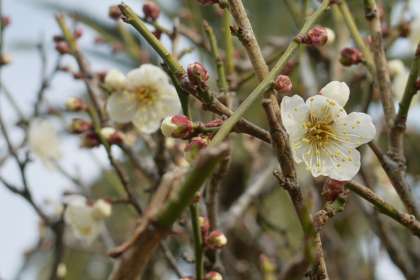 職員室前の庭の梅が開花しました。しだれ梅も赤いつぼみを膨らませています。