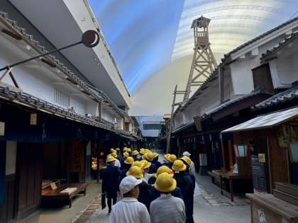 館内に入ると江戸時代の街並みがあり、それぞれの家に上がることができて熱心に見学していました。