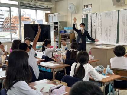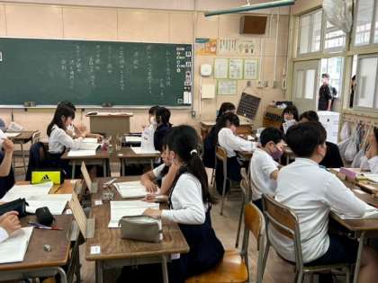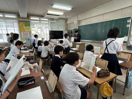 5年生は国語教材「おにぎり石の伝説」の音読をいろいろな読み方で工夫しました。6年生は短歌作りに挑戦しました。