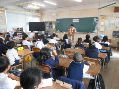 6年生の学級では絵本ではなく、お話を想像しながら聞いていました。次回は低学年で、6月5日に行います。