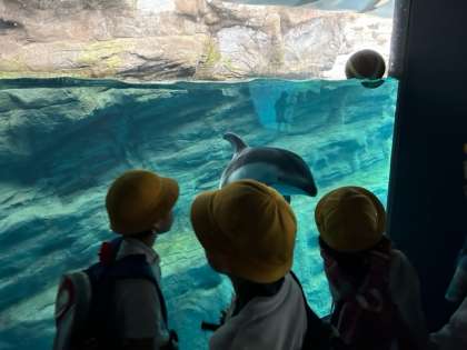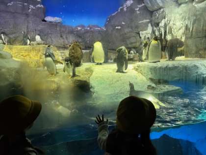 ペンギン、イルカは人気です。水中の動きまで熱心に観察していました。
