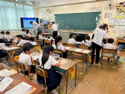 神路郵便局の方にお越しいただき、はがきの書き方の学習をしました。宛名の字の大きさや相手を思いやる言葉や楽しかったこと、うれしかったことを書くといいですねとお話がありました。この頃はメールが主で子どもたちが手紙を書く機会はあまりないと思います。直筆で思いを伝える良さに気づく機会になるといいです。