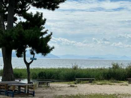 予定通り宿舎につきました。程よく風があり、湖はおだやかな様子です。