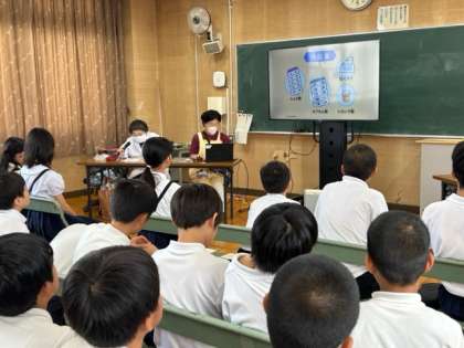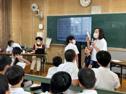 くすりの正しい飲み方、副作用についてなど、お医者さんの指示を守って服用することを実験も交えて教えて頂きました。
