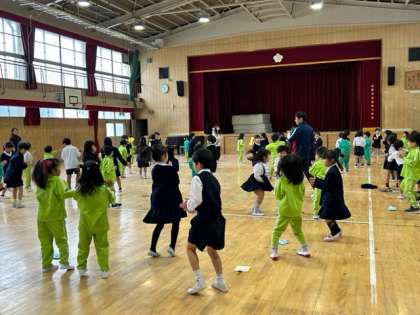 小市保育園年長組の子どもたちが、遊びに来てくれました。1年生は、お手製のおもちゃで一緒に遊んだり、校内を手を繋いで案内したりして、良いお兄さんお姉さんになってくれました。