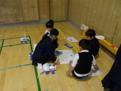 2年生が生活科で作ったいろいろなおもちゃを1年生に披露していっしょに遊ぶ、おもちゃまつりを行いました。
