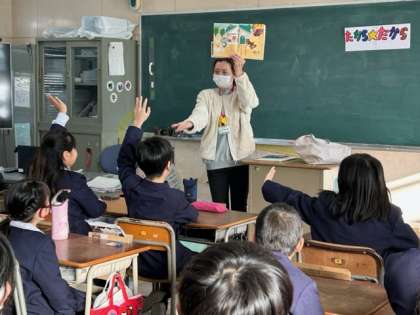 あるクラスでは、謎かけの本を一緒に考えながら聞いています。別のクラスでは、以前に掲載しました「稲むらの火」の続編を聞いています。