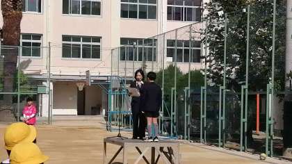 朝の児童朝会で、昨年度のシャトルランの記録の伸び率が最も高かった児童に表彰を行いました。気候もよくなり、子どもたちには外でしっかりと体を動かし体力をつけていってほしいです。