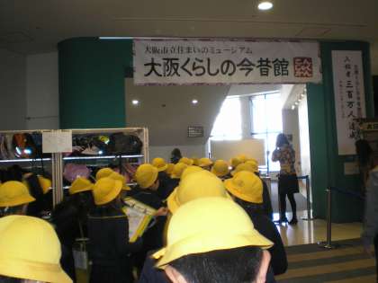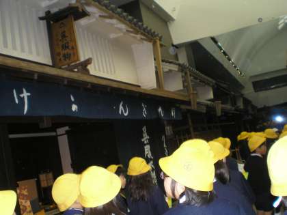 本日3年生は社会見学でくらしの今昔館に行きました。くらしの今昔館では昔の大阪が再現されており、風呂屋、本屋、呉服屋が大通りに並んでいる様子や、当時の庶民の生活の様子を見ることができます。