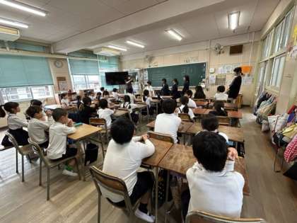 本校では、児童集会やふれあい遠足など、年間通して異学年で交流をしています。今日は、ふれあい班の顔合わせを行いました。まだぎこちない様子ですが、これから打ち解けて、楽しく活動できるようになっていくことでしょう。