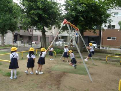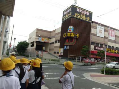 2年生が校区内の建物や公園などを見学するため、校区めぐりに行きました。途中、雨がぽつぽつと降り始めましたが、すぐにあがったので、予定通りのコースを歩いて、深江公園の遊具で少し遊んで戻ってきました。