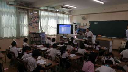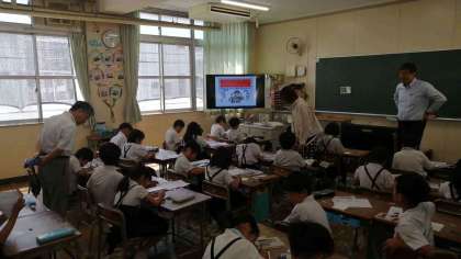 郵便局の方にお越しいただき、はがきの書き方について教えていただきました。テンプレートを使って、子どもたちは一生懸命宛名を書いていました。