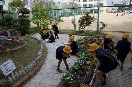 今朝まで少し肌寒く感じましたが、昼ごろは気温も上がり、活動するのに適した状況になりました。2年生が校庭に咲いている花を熱心に観察していました。4年生は運動場でドッジボールをし、元気よく活動していました。見ている側も心温まるひとときでした。