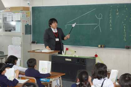 2年生は、まず自分たちで作った自己紹介カードをもとに、自己紹介をしました。自分が紹介するのではなく、友だちが紹介する方法で、どの児童もどのように紹介すればよいのか考え、発表していました。
