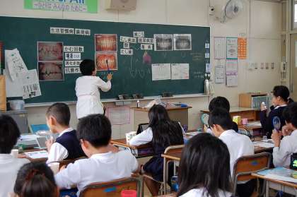 本日6年生を対象に歯と口の健康教室を行いました。まずは動物園にいるサルと野生のサルの写真を見比べ、きれいな歯はどちらかを聞いてみました。正解をする児童が多く、その理由についても積極的に意見を述べていました。そのあと歯周病について学習し、自分で鏡を見ながら歯をチェックしました。自分が思っていたよりもきちんと磨けていないことに気がつきました。1週間チェックし、最後にワークシートを提出します。1週間後にどのように改善されているか楽しみです。