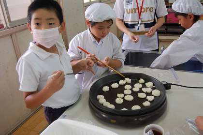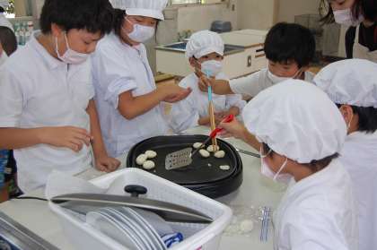 今日の3時間目、なかよしタイムでなかよし児童がいももちづくりをおこないました。去年から育てている学習園のジャガイモを収穫しました。そして、ゆでたジャガイモを片栗粉で混ぜてホットプレートで焼きました。児童は、何日も前から楽しみにしていた活動でした。自分たちで育ててつくったいももちは、たいへんおいしかったようです。