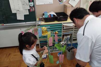 はじめに、七夕物語の映像を見て七夕とは何か理解を深めました。