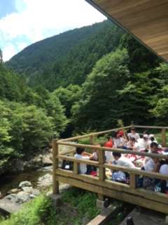 心配していた天気でしたが、今は快晴です。山登りのあとのご飯はいつも以上においしく食べていました。しっかり食べて、宿舎に向けての山登りをがんばりましょう!