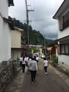 宿で少し休憩してから、龍泉寺まで避難訓練をしました。みんな元気です。