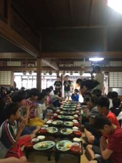 子どもたちは早速朝ごはんを食べています。今日1日の活動のエネルギーとなるので、しっかりと食べましょう!!