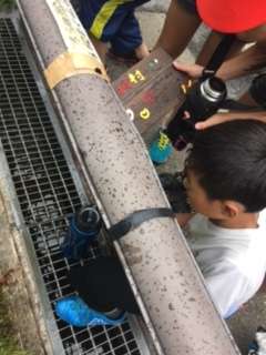 活動も一通り終え、少し疲れもできてきたころ。洞川名物?「名水ごろごろ水」の出番です。効き目は ? ですが、何事も気持ちの持ちようです。これを飲んで元気いっぱいになると信じて、これからの活動もがんばりましょう!