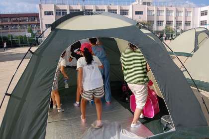 校庭キャンプの活動が始まりました。キャンプを立てたり、飯盒炊さんのカレーの準備をしたりしました。普段はあまりしない作業のため、思うように進まないこともありましたが、みんな一生懸命頑張っていました。今やっていることが、今日これから役立ちます。あともう少し頑張りましょう!