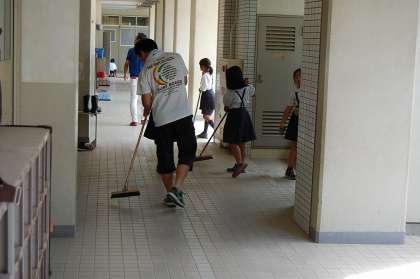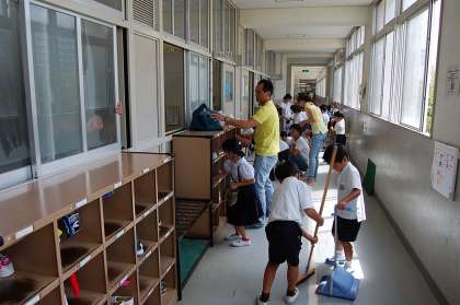 始業式を終え、宝栄クリーン大作戦(大掃除)が始まりました。保護者の方にも多数参加していただき、子どもたちといっしょに大掃除をしています。気分も新たに明日からの学習に取り組んでほしいと思います。