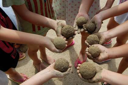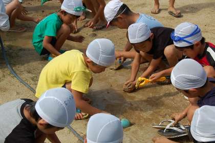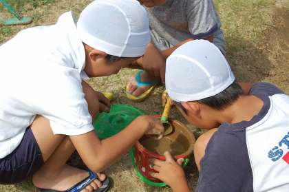 生活科の学習でどろんこあそびをしました。たくさんのどろを集めて、おだんごを作ったり、持ってきたスコップで道を掘ったり、楽しく活動することができました。