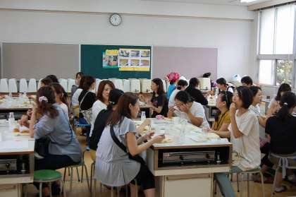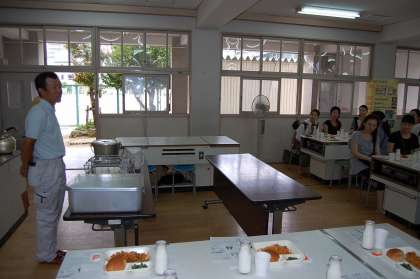 本日保護者を対象に給食試食会を行いました。大変好評で40名近くの方に参加していただきました。今日のメニューは黒糖パンにイタリアンスパゲティを子どもたちに人気のメニューで保護者の方も喜んでいました。栄養士の方によるお話の中で飲料品に含まれる砂糖の量に大変驚いていました。