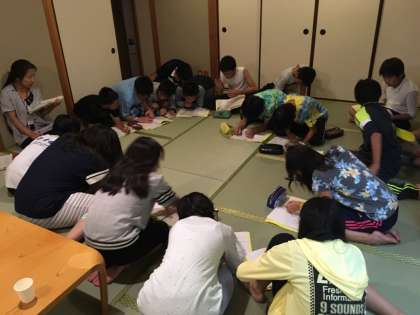 本日最後の活動、室長会議です。今日1日の反省と明日の予定の確認をしています。明日も宝栄小学校の最高学年としてのふるまいをしてもらいたいです。