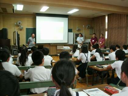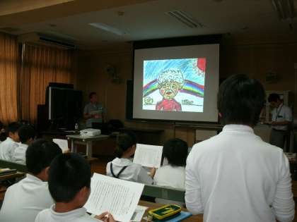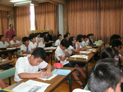 10月3日(月)の2・3校時目に多目的室でサンローズオオサカの方に来校いただき、高齢者体験講座が開かれました。4月に子どもたちは高齢者体験、7月にはサンローズオオサカに赴き、高齢者の方とふれあい体験をしています。それらのまとめとして今回講座が行われました。内容は認知症についてです。認知症になると脳がどのような状態になるのか、また認知症になった人の気持ちなど考えて、周りの人や地域の人たちがどのように接していけばいいのかといったことなどを学びました。最後には、講座を受けた証明として、認知症のサポーターを表すオレンジのリングをもらい、うれしそうにしていました。