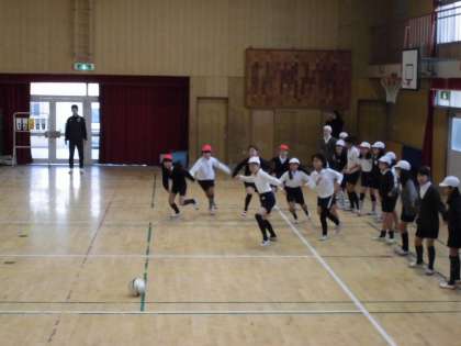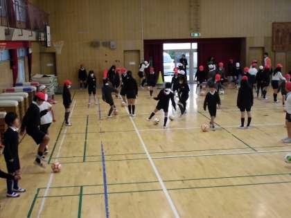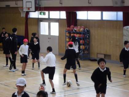 本日5年生が出前授業でシュライカー大阪の方を講師に招き、フットサルを教えていただきました。前半はボールに慣れるためにいろいろゲームをし、後半は試合形式で行いました。サッカーのルールとは少し違っていましたが、子どもたちは楽しく活動していました。