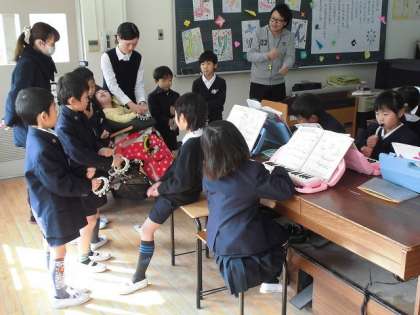 今日は光陽支援学校との交流会がありました。音楽室で一緒にリズム遊びをしたり、歌を歌ったり演奏したりしました。たくさんの音や声が響き、笑顔があふれて楽しい一時間になりました。
