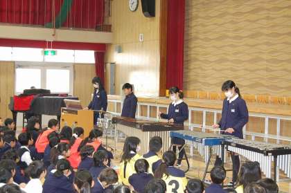 今日の児童集会では、音楽クラブとダンスクラブが発表しました。音楽クラブはいろいろな楽器を使って、力のある演奏しました。ダンスクラブは音楽に合わせて軽快なダンスを踊りました。どちらのクラブも練習の成果を発揮し、観客の児童から大きな拍手が起こりました。