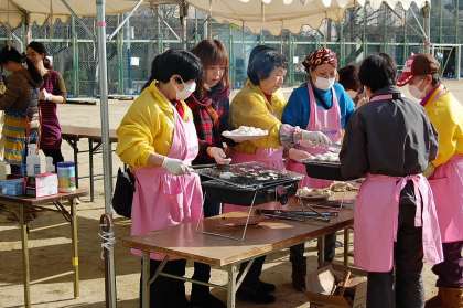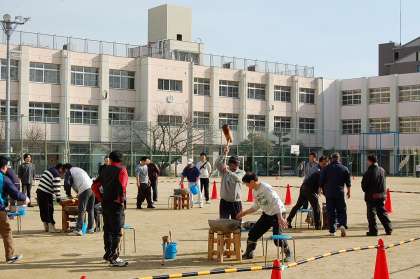 毎年恒例となっている「卒業生を祝うもちつき大会」が行われました。前日からの準備、そして本日早朝からの準備と、地域、保護者の方にお手伝いしていただき、ありがとうございます。天候にも恵まれ、たくさんの人が参加しています。みんなおいしそうに餅を食べていました。