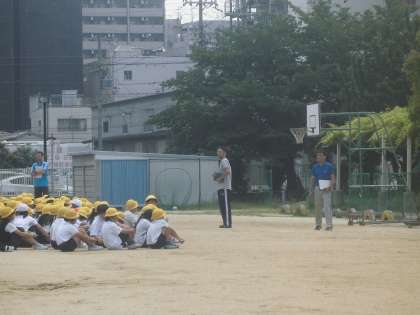 今日の3時間目、避難訓練を行いました。今回の訓練は、給食室から出火したという想定で実施しました。「お(おさない)、は(はしらない)、し(しゃべらない)、も(もどらない)」を合言葉に、静かに速やかに行うことができました。大切な命を守るためにも、緊張感をもってしっかりと訓練に取り組むことができました。