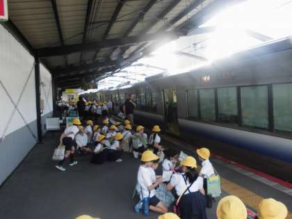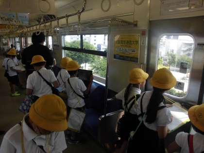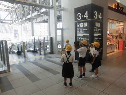 本日3年生が社会見学で環状線1周を行いました。タブレットを持ち、車窓から町の様子を写真に撮っていたのですが、思っていたよりも電車が速くてうまく撮れなかったグループもありました。しかしどの児童も熱心に町の様子をメモしていました。