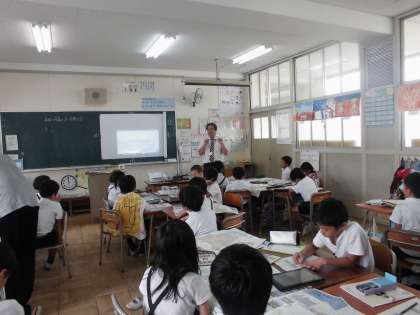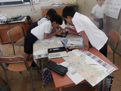 本日は、3年生の社会科で校長先生による出前授業がありました。あべのハルカス展望台から撮影した4枚の写真を使って方位を考えました。子どもたちはタブレットや地図を使って、意欲的に調べ学習をしていました。