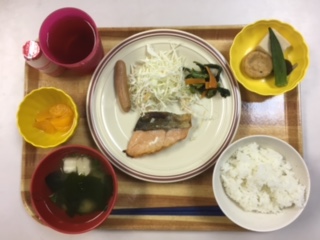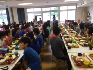 朝ご飯です。食事係が手際よく準備をしました。美味しくいただきます。